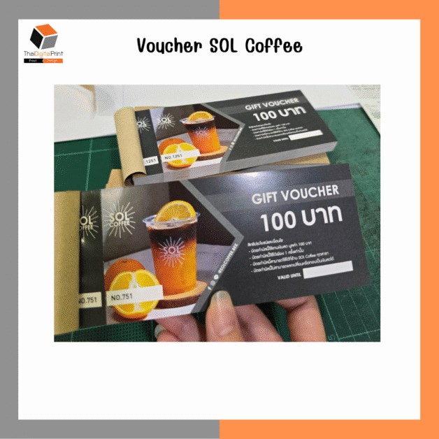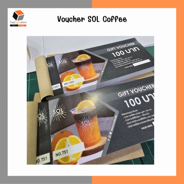 ผลงานพิมพ์ “ คูปอง Voucher SOL Coffee ”