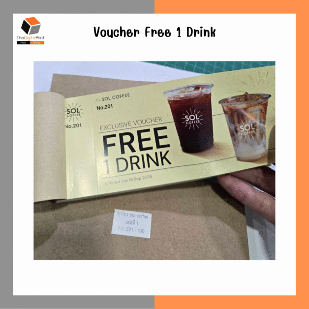 ผลงานพิมพ์ “ Voucher SOL Coffee Free 1 Drink ”