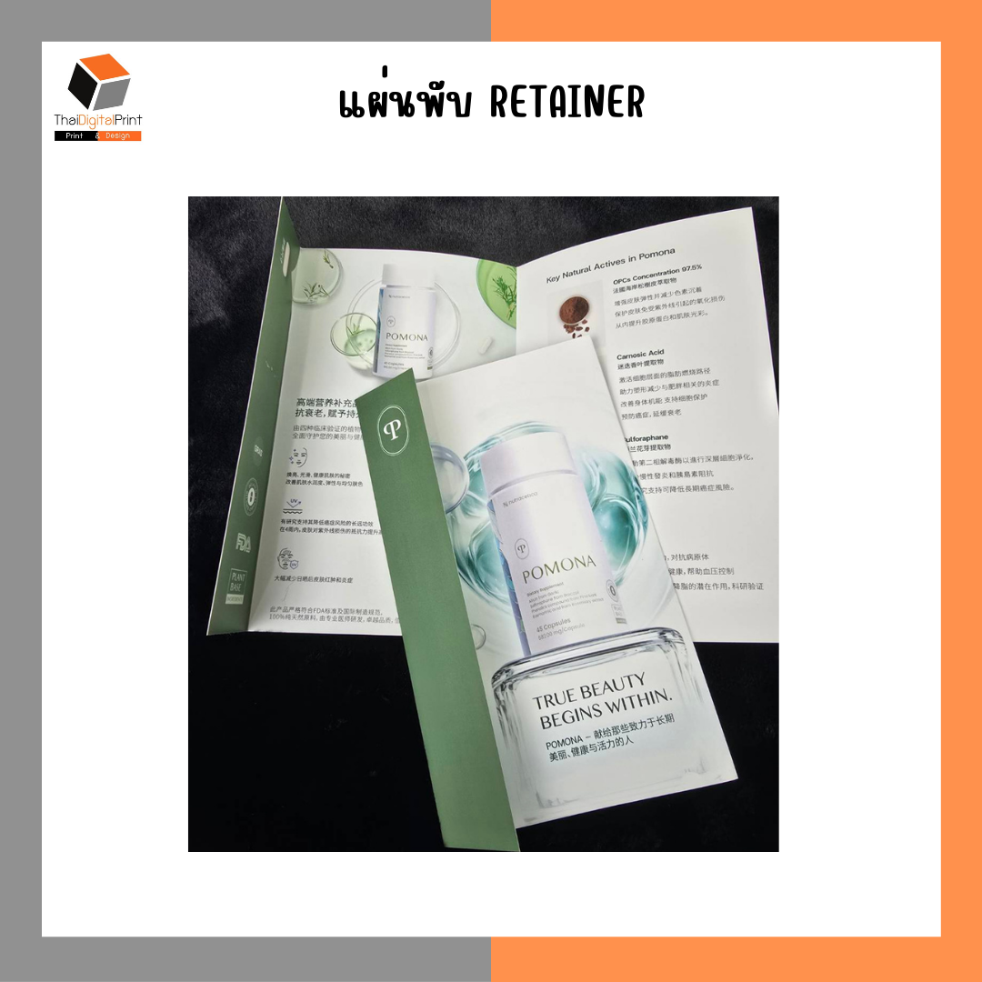 ThaiDigitalPrint.com รับพิมพ์แผ่นพับ แบบดิจิตอล ไม่จำกัดจำนวนขั้นต่ำ เริ่มตั้งแต่ 1 ชิ้นขึ้นไป ยิ่งพิมพ์จำนวนเยอะ ราคาต่อชิ้นยิ่งถูก ลูกค้าสามารถพิมพ์แผ่นพับ ได้ทั้งแบบขาวดำ หรือ 4 สี พิมพ์ 1 หน้า หรือ 2 หน้า แล้วแต่ลูกค้าออกแบบ